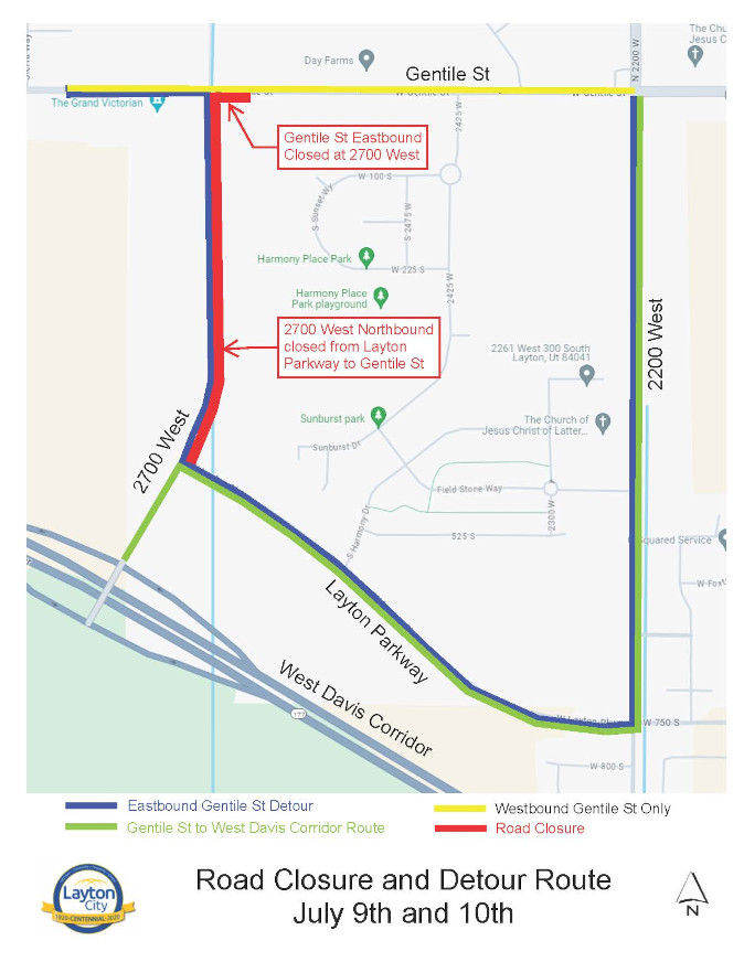 2700 West Northbound closed from Layton Parkway to Gentile St