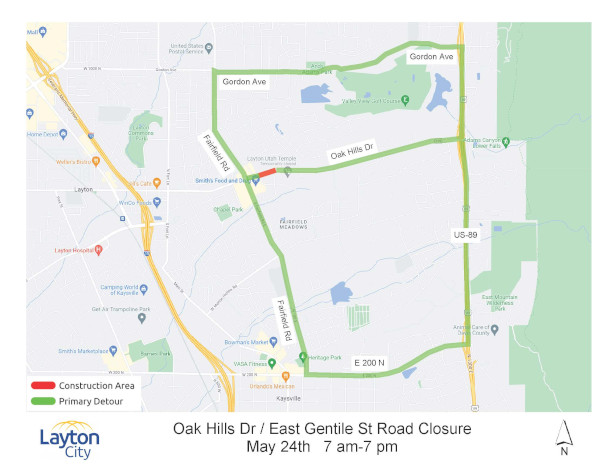 Oak Hills Dr / East Gentile St Road Closure May 24th 7:00 am - 7:00 pm