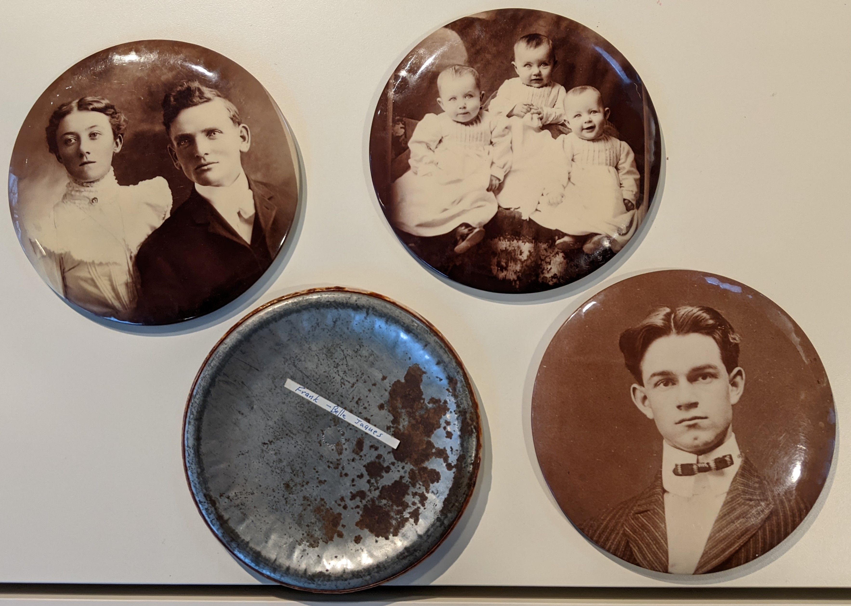 If you have one or more celluloid pinback photo buttons like these, consider yourself lucky, especially if the photo includes a family member. These increasingly hard-to-find pins were a trendy way to display favorite images as photography became more popular and easily accessible to the masses in the early 1900s.