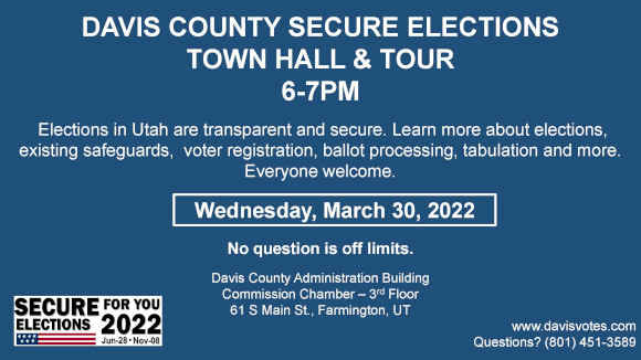 Elections in Utah are transparent and secure. Learn more about elections, existing safeguards, voter registration, ballot processing, tabulation and more. Everyone welcome.