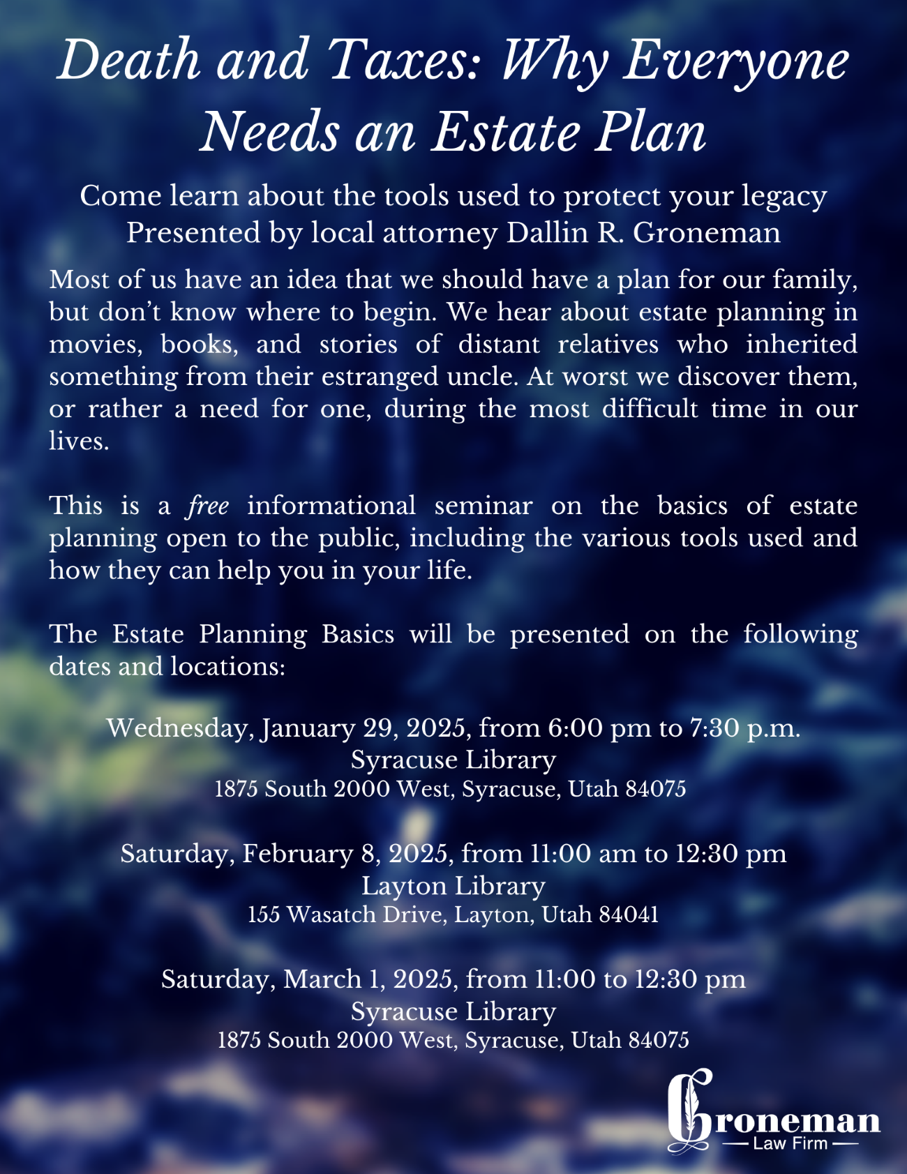 This is a free informational seminar on the basics of estate